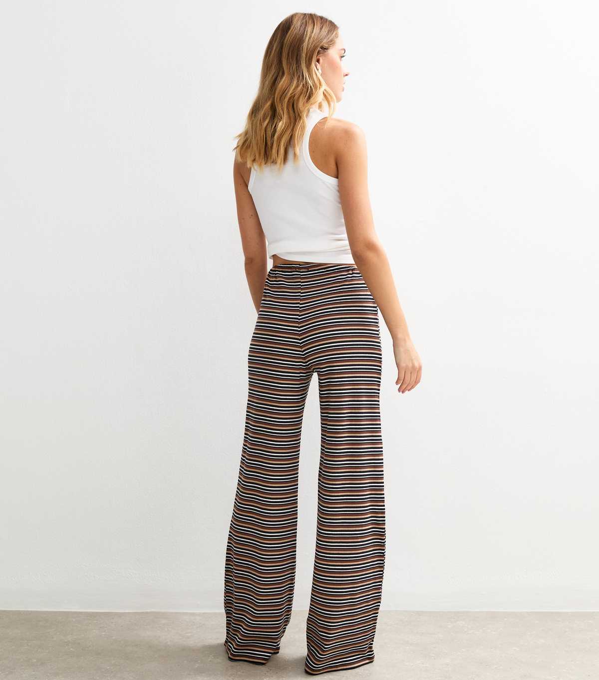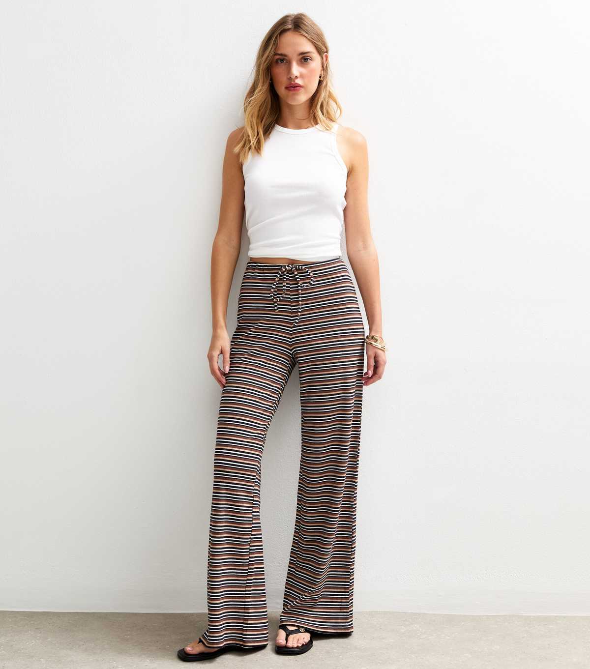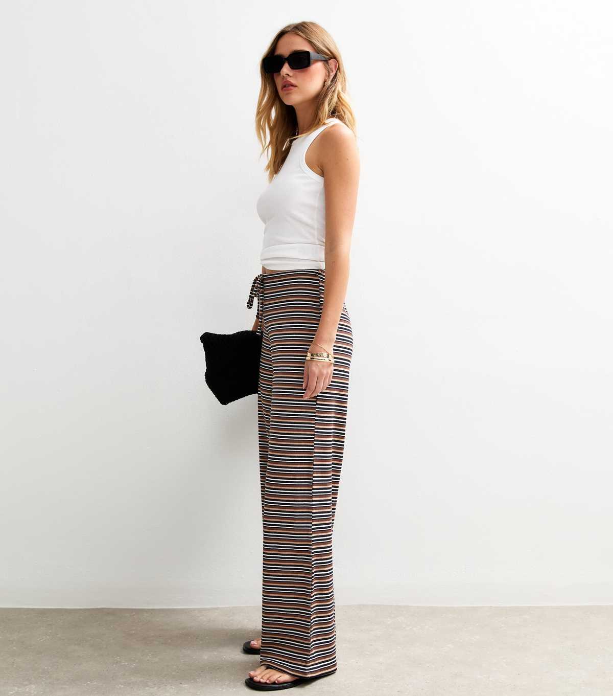 The jersey construction and wide-leg silhouette combine to set a comfortable tone for these black striped trousers. Use the waist ties to adjust the fit.